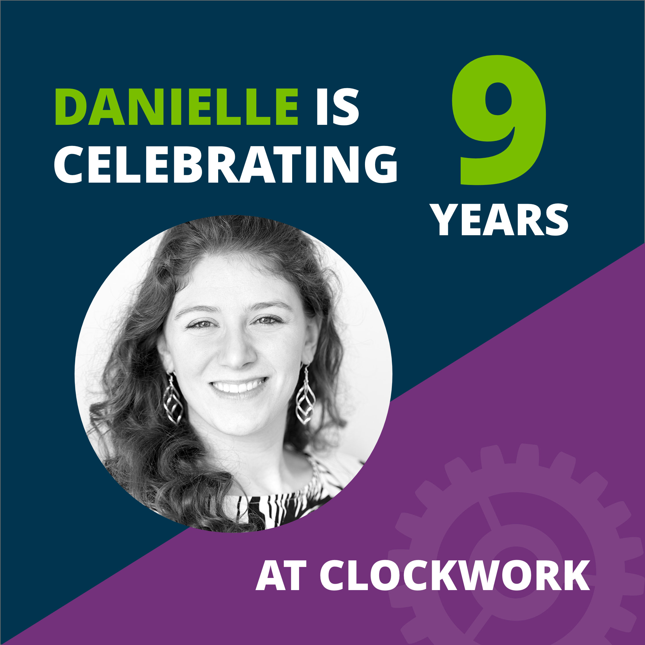 Danielle Diforio is celebrating her 9th year at Clockwork as our Account & Project Director. We applaud Danielle for her project management skills that keep us all on track!